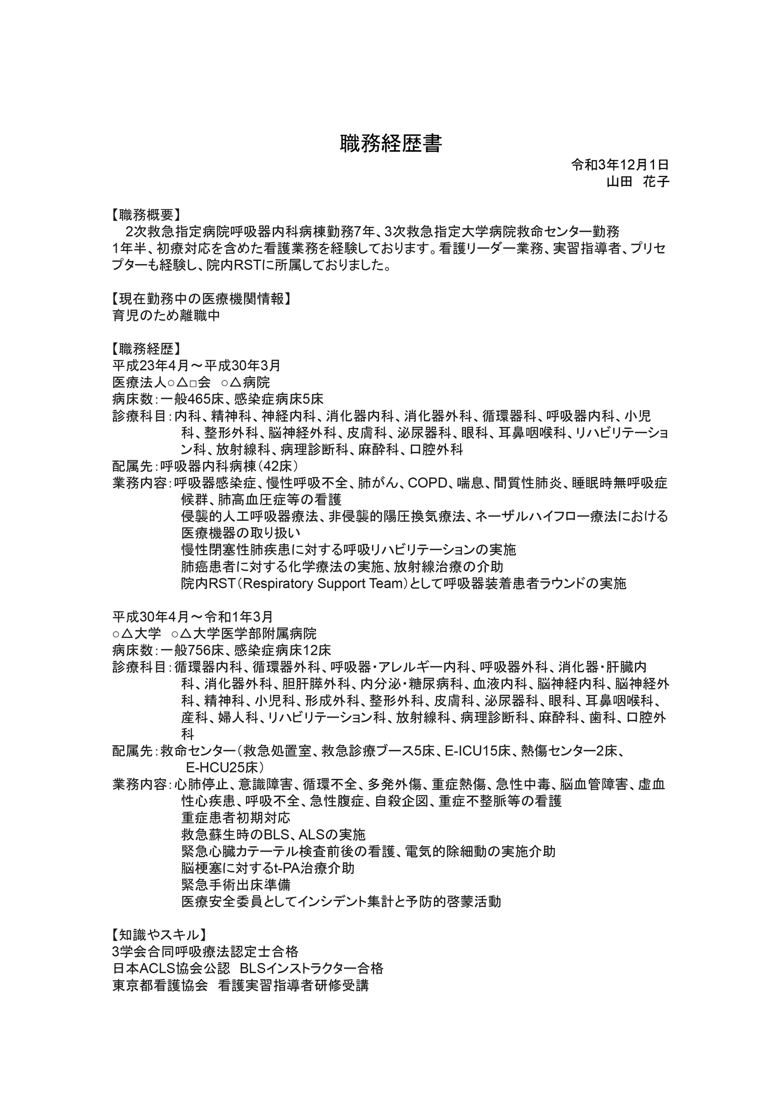 履歴書と同様に、職務経歴書も虚偽の記入は絶対にいけません。入職後に虚偽が判明した場合は、解雇になる可能性があります。
